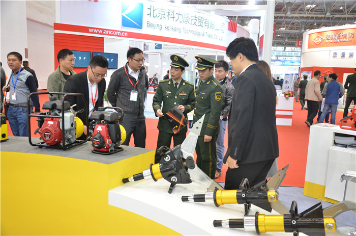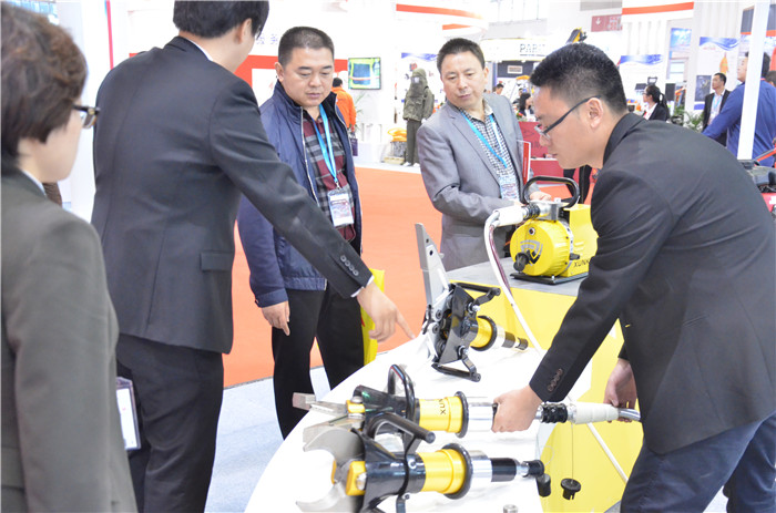 2015年10月,山東迅凱攜最新開發(fā)的第四代液壓破拆工具組參加北京國際消防展,本次是第四代液壓破拆工具首次亮相,不僅是外觀工藝風(fēng)格的變化,70Mpa額定工作壓力,剪切圓鋼直徑可達35mm,是國內(nèi)性能最強的液壓破拆工具。